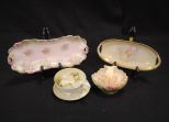 465A Collection of Hand-Painted KPM Relish Dish, French Relish Dish, Austrian Basket, Tillowitz Mustard Dish