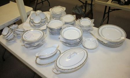 Set of H and C Selb Bavarian Dishes, including; seven dinner plates, eleven salad plates, eleven bread and butter plates, eleven cereal bowls, eleven soup bowls, twelve berry bowls, eight cups, fourteen saucers, tureen two platters, eight double handle bouillon cups, gravy boat (total of 97 pcs.) along with two Sheffield China Berry bowls Set of H and C Selb Bavarian Dishes, including; seven dinner plates, eleven salad plates, eleven bread and butter plates, eleven cereal bowls, eleven soup bowls, twelve berry bowls, eight cups, fourteen saucers, tureen two platters, eight double handle bouillon cups, gravy boat (total of 97 pcs.) along with two Sheffield China Berry bowls