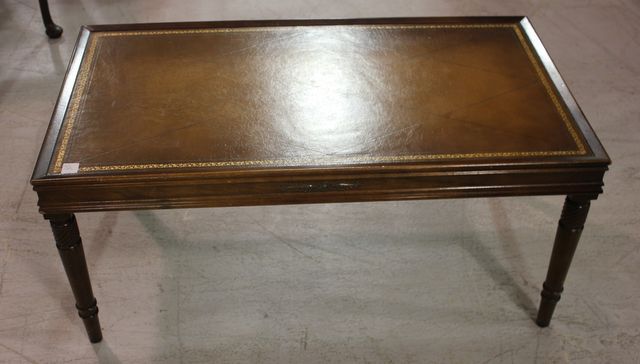 Leather Top Coffee Table; 36" w., 20" d., 16 1/2" h. Leather Top Coffee Table; 36" w., 20" d., 16 1/2" h.