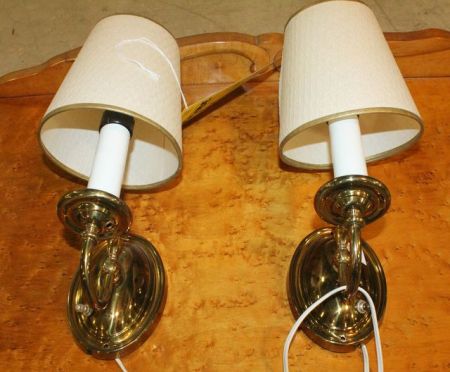 Pair of Brass Wall Sconces; 3 1/2" w., 15 1/2" h. Pair of Brass Wall Sconces; 3 1/2" w., 15 1/2" h.
