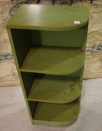 Four Shelf Display Painted Green; 15" w., 9 1/2" d., 36" h. Four Shelf Display Painted Green; 15" w., 9 1/2" d., 36" h.