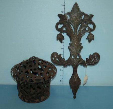 Iron Candleholder (7" dia.) and an Iron Wall Sconce (7 1/2" w., 15" h.) Iron Candleholder (7" dia.) and an Iron Wall Sconce (7 1/2" w., 15" h.)
