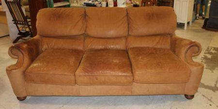 Three Cushion Sofa Sofa,Leather with three cushions; 91" w., 42" d., 41" h. Three Cushion Sofa Sofa,Leather with three cushions; 91" w., 42" d., 41" h.