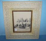Black and White Print of Garden Area in "Shabby Chic" Victorian Frame; 16 1/2" w., 18 1/2" h. Black and White Print of Garden Area in "Shabby Chic" Victorian Frame; 16 1/2" w., 18 1/2" h.