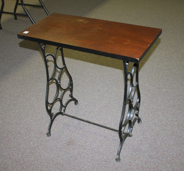 Sewing Machine Base with Wood Top; 28 1/2" w., 14" d., 29" h. Sewing Machine Base with Wood Top; 28 1/2" w., 14" d., 29" h.