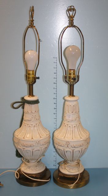 Pair of Decorative Brass and Porcelain Vintage Lamps; 32" h. (have shades) Pair of Decorative Brass and Porcelain Vintage Lamps; 32" h. (have shades)