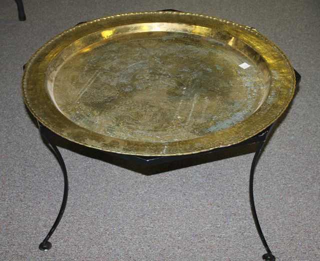 Coffee Table with Brass Top and an Iron Base; 30' dia., 16" h. Coffee Table with Brass Top and an Iron Base; 30' dia., 16" h.