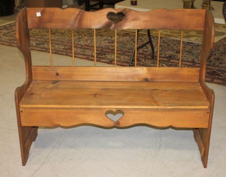 Primitive Style Pine Settee, 48"w., 17"d., 40"h. Primitive Style Pine Settee, 48"w., 17"d., 40"h.