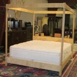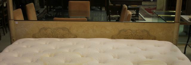 Henredon King Side Bed, Blonde Oyster Burl with fluted columns, mattress set optional. 84"h. Henredon King Side Bed, Blonde Oyster Burl with fluted columns, mattress set optional. 84"h.