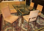 551 Contemporary Brass Base Glass Top Table and Six Chairs