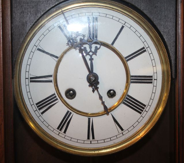 Good Antique 19th Century Victorian Wall Clock, 40"h., 15"w. Good Antique 19th Century Victorian Wall Clock, 40"h., 15"w.