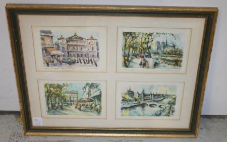 Group of Four Prints of Paris Scenes framed and matted, 19"w., 15"h. Group of Four Prints of Paris Scenes framed and matted, 19"w., 15"h.