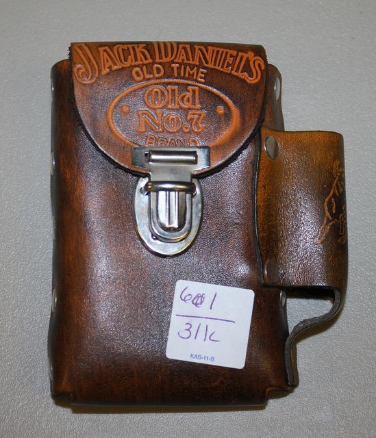 600 Vintage Jack Daniels Old Number 7 Leather Cigarette Case Belt loop, lighter slot, 4"w., 4"h.
