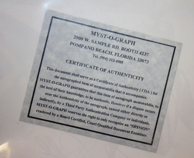 644 Grey Camarillo Autograph Myst-O-Graph Certificate of Authenticity, 8" x 10".