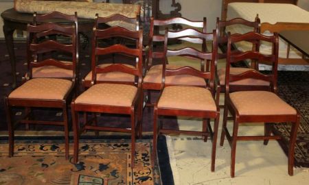 669 Set of 8 Mahogany Ladder Back Chairs 34"h.