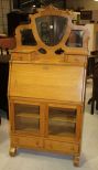 Unusual Oak Empire Dropfront Desk with bookcase bottom, 67"h., 32"w., 13"d. Unusual Oak Empire Dropfront Desk with bookcase bottom, 67"h., 32"w., 13"d.