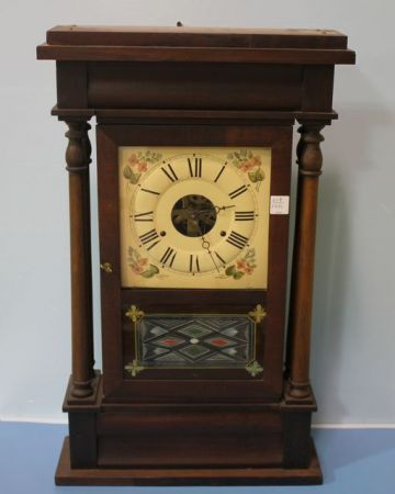 Empire Ogee mantle clock with new face, has key. 26" h., 16" w. Empire Ogee mantle clock with new face, has key. 26" h., 16" w.