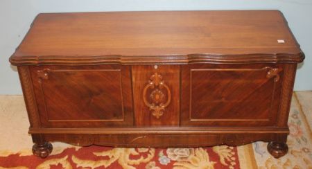 103 Walnut Lane Cedar Lined Chest good condition has carving on feet, 48"w., 19"d., 23"h.