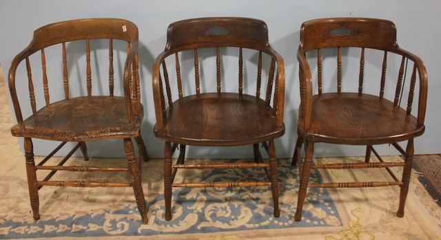 119 Three Oak Early 20th Century Captains Chairs 20"w., 31"h.