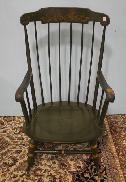 Stencil and Painted Green Rocker 24"w., 40"h. Stencil and Painted Green Rocker 24"w., 40"h.