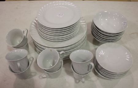 Set of Lynns China Which includes eight dinner plates, eight salad plates, eight cups/saucers, seven cereal bowls. Set of Lynns China Which includes eight dinner plates, eight salad plates, eight cups/saucers, seven cereal bowls.