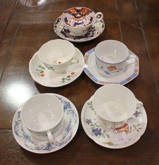 Five Various Cups and Saucers one chipped Five Various Cups and Saucers one chipped