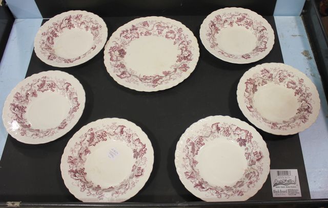 Six Wedgwood "Old Vine" 8" Bowls, 10" Plate some age cracks Six Wedgwood "Old Vine" 8" Bowls, 10" Plate some age cracks