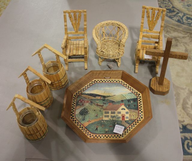 246 Miniature Clothes Pin Chairs, Barrel and Decorative Wall Plaque Tray