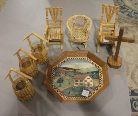 Miniature Clothes Pin Chairs, Barrel and Decorative Wall Plaque Tray Miniature Clothes Pin Chairs, Barrel and Decorative Wall Plaque Tray