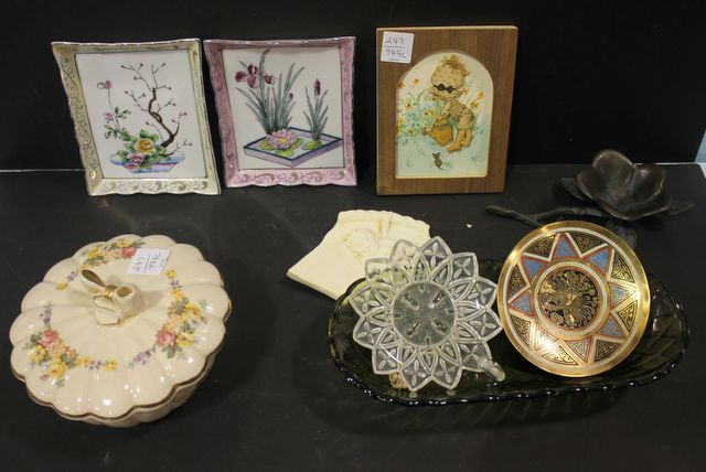 247 Green Relish Dish, Ceramic Covered Dish, and Small Plaques Plaques 4"