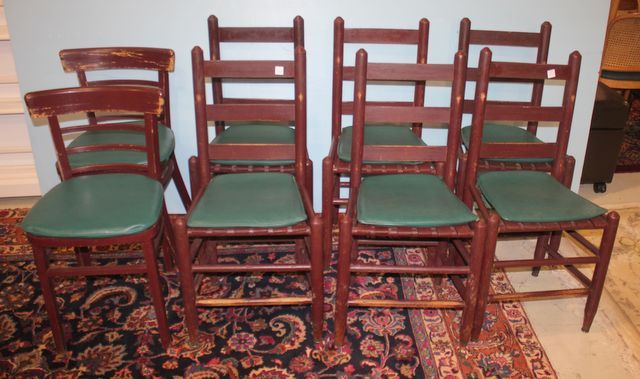 Seven Ladder Back Chairs and One Curved Back Chair Seven Ladder Back Chairs and One Curved Back Chair