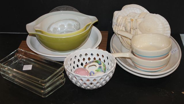 Kitchen Items Including corning pie plate, mixing bowls, trivets, glass tray Kitchen Items Including corning pie plate, mixing bowls, trivets, glass tray