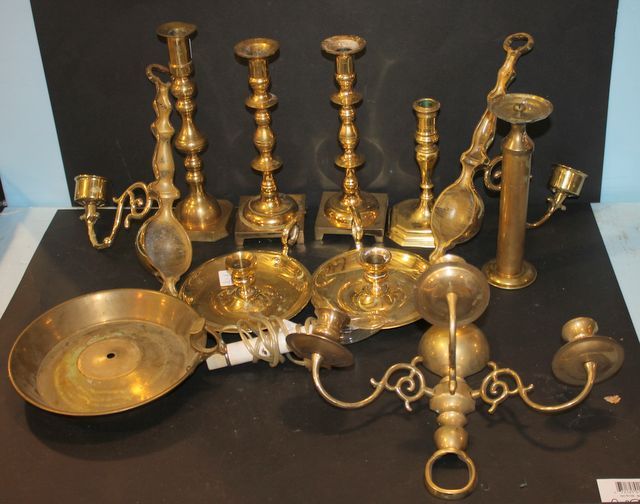 378 Group Lot of Brass Including candlesticks, wall sconces, ten pieces