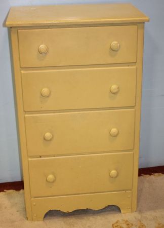 388 Painted Yellow Four Dresser Chest 26"w., 17"d., 43"h.