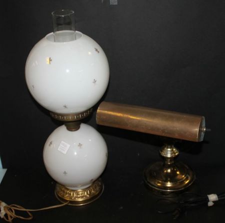 483 Brass and Glass Ball Shade Lamp, and Brass Student Lamp lamp 17"h., Lamp 13"h.