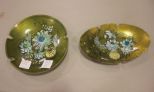 501 Two Vintage Enamel Ashtrays both signed Sashab, 6"dia., oval 7"w.