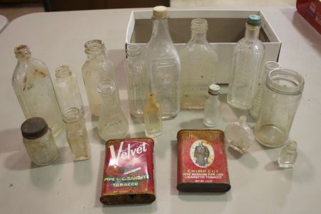 Box Lot of Old Bottles and Prince Albert Tins Box Lot of Old Bottles and Prince Albert Tins