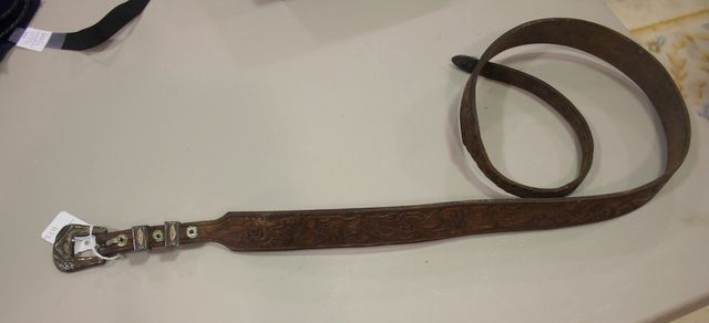 Vintage Floral Tooled Leather 49" Belt with Sterling Mexico Buckle Vintage Floral Tooled Leather 49" Belt with Sterling Mexico Buckle