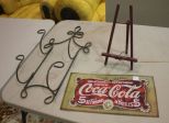 Metal Plate Rack, Easel and Coca-Cola Sign rack 25"h., 11"w., Sign 15"w., 6"h. Metal Plate Rack, Easel and Coca-Cola Sign rack 25"h., 11"w., Sign 15"w., 6"h.