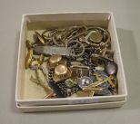 Miscellaneous Box of Cuff Links, Parts, Watch Chain, Small Sterling Clip Miscellaneous Box of Cuff Links, Parts, Watch Chain, Small Sterling Clip