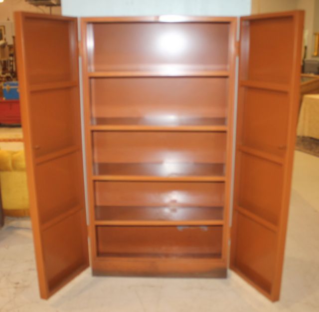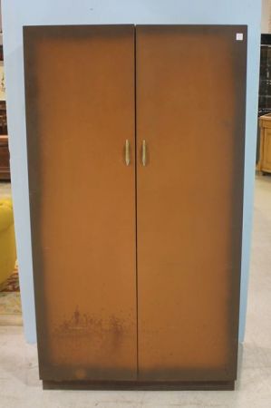 716 Two Door Metal Cabinet with Five Shelves, Unusual Shelves on Doors. 36"w., 15"d., 66"h.