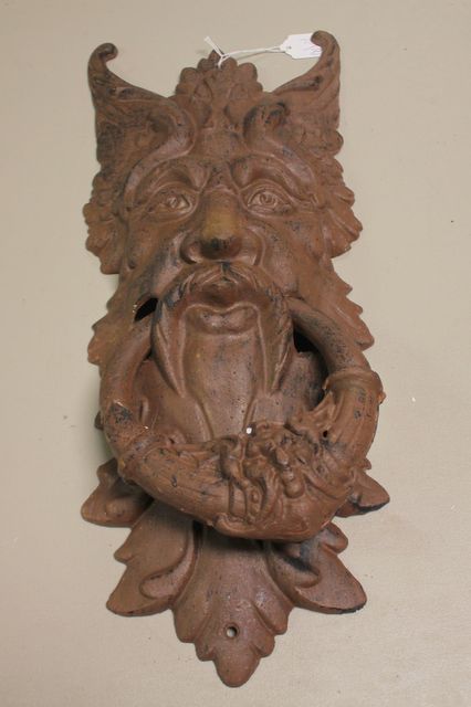 Reproduction Cast Iron Door Knocker, Old Man Winter 20"h. Reproduction Cast Iron Door Knocker, Old Man Winter 20"h.