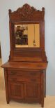 757 Oak Washstand with Gingerbread Carved Mirror 33" w., 75" h., 18" d.