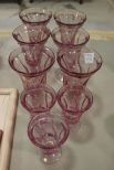 Six Glasses and 3 Pink Juice Glasses 6" h. and 4 1/2" h. Six Glasses and 3 Pink Juice Glasses 6" h. and 4 1/2" h.