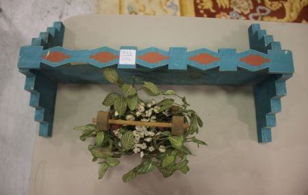788 Mexican Design Shelf and Small Basket with Strawberries Shelf 17" w., 10" h.; basket 4" w., 5" h.