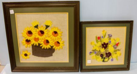 Two Framed Floral Stitchw...