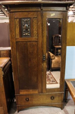 421 Oak Double Door Armoire with Drawer