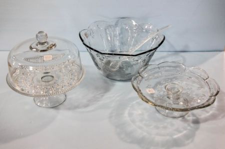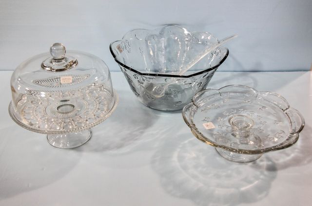 1295 Two Cake Stands & Punch Bowl with Ladle