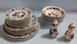 Two 10 1/2" dinner plates, six 8 1/2" salad plates, eight 6 1/2" bread/ butter plates, eight cereal bowls, shakers Two 10 1/2" dinner plates, six 8 1/2" salad plates, eight 6 1/2" bread/ butter plates, eight cereal bowls, shakers