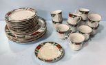 Includes five dinner plates, eleven salad plates, eleven cups and one saucer Includes five dinner plates, eleven salad plates, eleven cups and one saucer